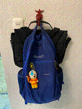 However, the main drawback was that it was not customizable. Therefore, I decided to design my own version, modifying the hook where the backpacks are held, enlarging the tabs and slots, adding holes for wall mounting, and adapting the design so each student could personalise it.